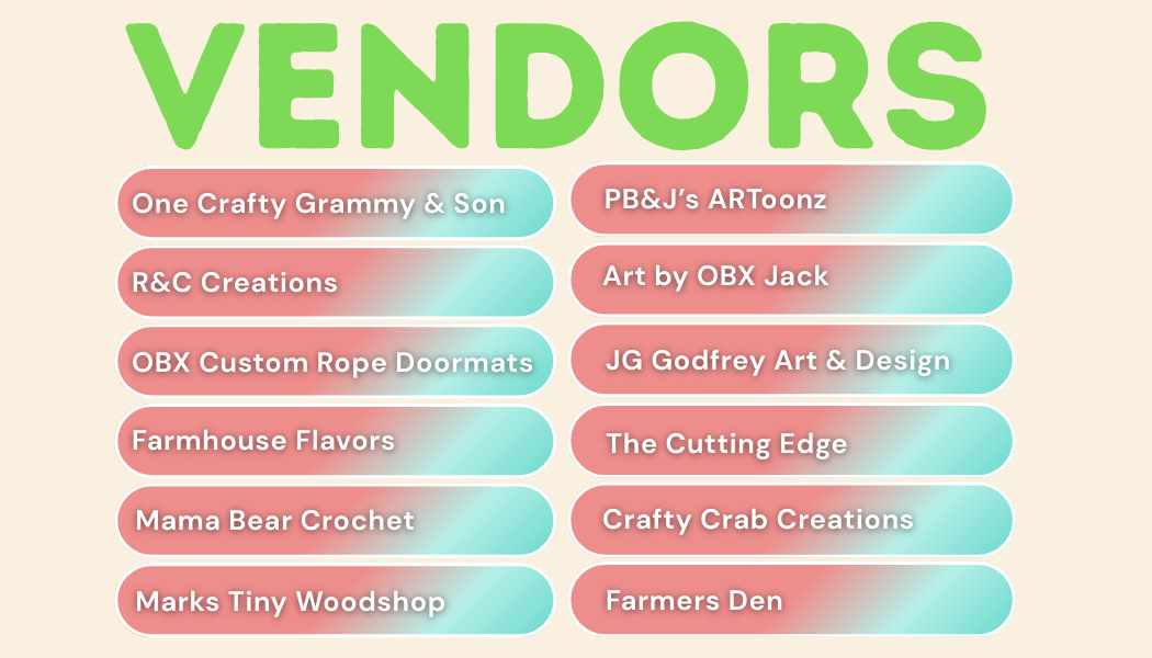 Now accepting vendor applications! Applications will be reviewed on a first come first served basis. We are accepting 20 craft vendors. Not accepting Scentsy, Norwex, or similar consultant businesses. Not accepting any type of food vendors.
