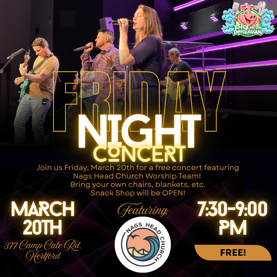 Kick off the weekend with our Free Friday Night Concert, and return Saturday for Pig on the Perquimans!